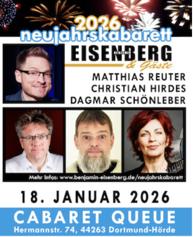 18jan18:0020:30NeujahrskabarettCabaret Queue, Fred-Ape-Weg 74, 44263 Dortmund